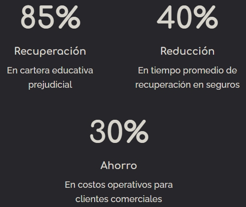 Visualización de recuperaciones, reportes y KPIs en tiempo real para tomar decisiones informadas.