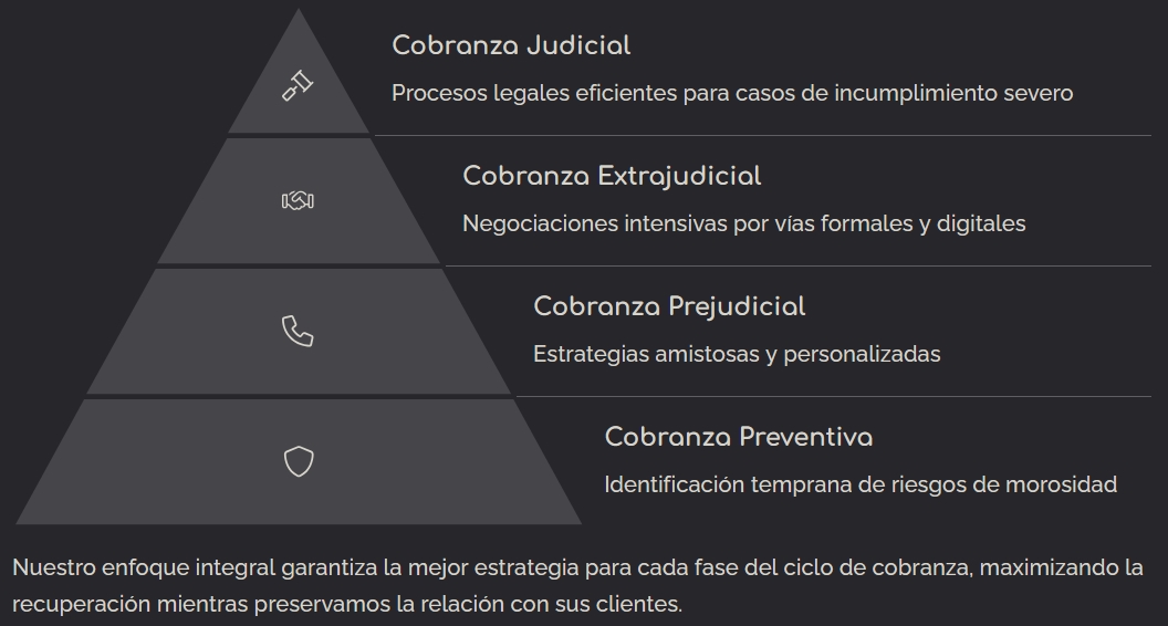 En Elite Recupero combinamos experiencia legal, tecnología y una metodología probada para lograr una gestión de cobranza integral y efectiva. Nuestro equipo multidisciplinario está compuesto por abogados, ingenieros y analistas con amplia trayectoria, lo que nos permite abordar la recuperación desde múltiples ángulos.